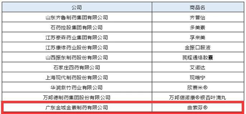金城金素曲索芬?榮登“2019年度中國最具創新力制劑品種”榜單