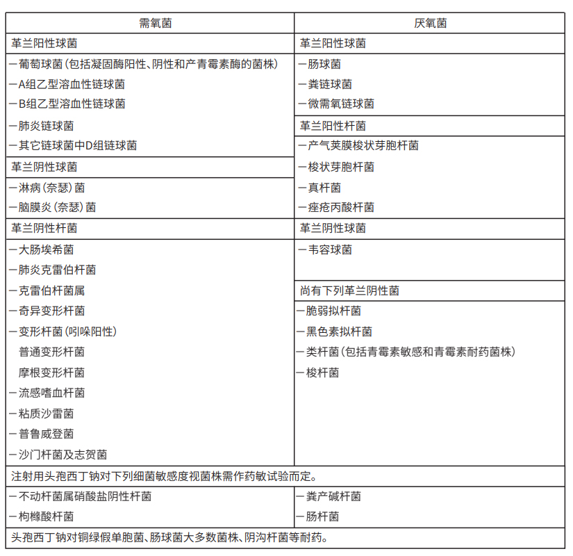 下列臨床常見革蘭陽性、陰性需氧及厭氧致病菌對本品高度敏感。