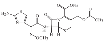 化學名稱:(6R,7R)-3-[(乙酰氧基)甲基]-7-[2-(2-氨基噻唑-4-基)-2-(甲氧亞氨基)乙酰氨基]-8-氧代-5-硫雜-1-氮雜雙環[4.2.0]辛-2-烯-2-甲酸鈉鹽。