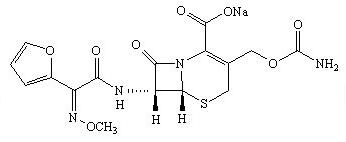Chemical Name:(6R ,7R)-7-[2-(呋喃-2-基)-2-(甲氧亞氨基)乙酰氨基]-3-氨基甲酰氧甲基-8-氧代-5-硫雜-1-氮雜雙環[4.2.0]辛-2-烯-2-甲酸鈉鹽。