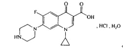 【成份】 本品主要成份為:鹽酸環(huán)丙沙星。其Chemical Name為:1-環(huán)丙基-6-氟-1,4-二氫-4-氧代-7-(1-哌嗪基)-3-喹啉羧酸鹽酸鹽一水合物。