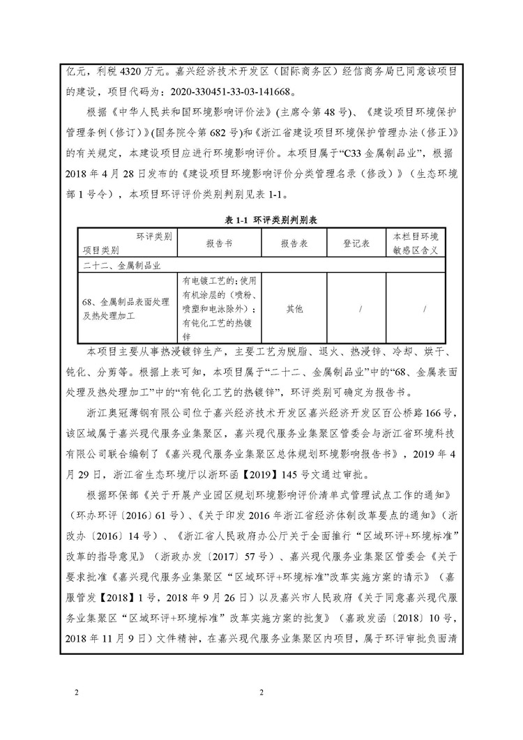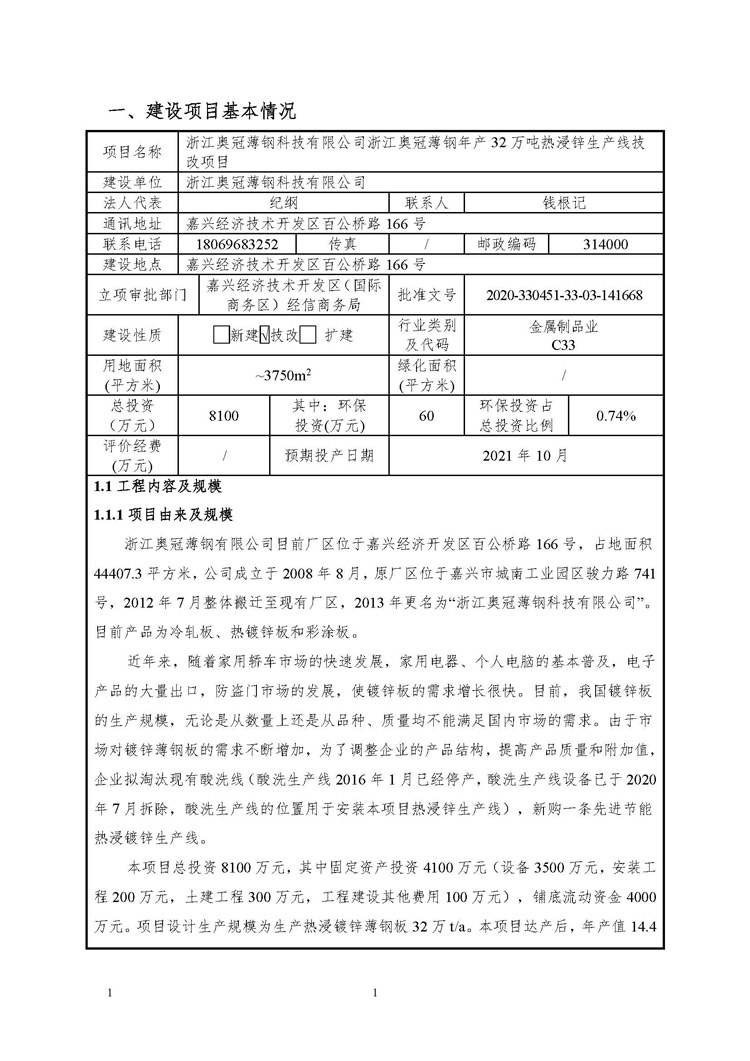奧冠熱鍍鋅環(huán)評(píng)表(2020.11.2公示)